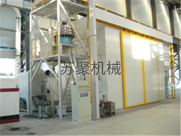 自動機械式回收噴砂(丸)房為平車往復式專用噴丸機,它由噴丸室體、噴丸器、螺旋輸送機、提升機、分離器、彈丸控制系統、照明系統、除塵系統、輸送平車、電控系統等部分組成。